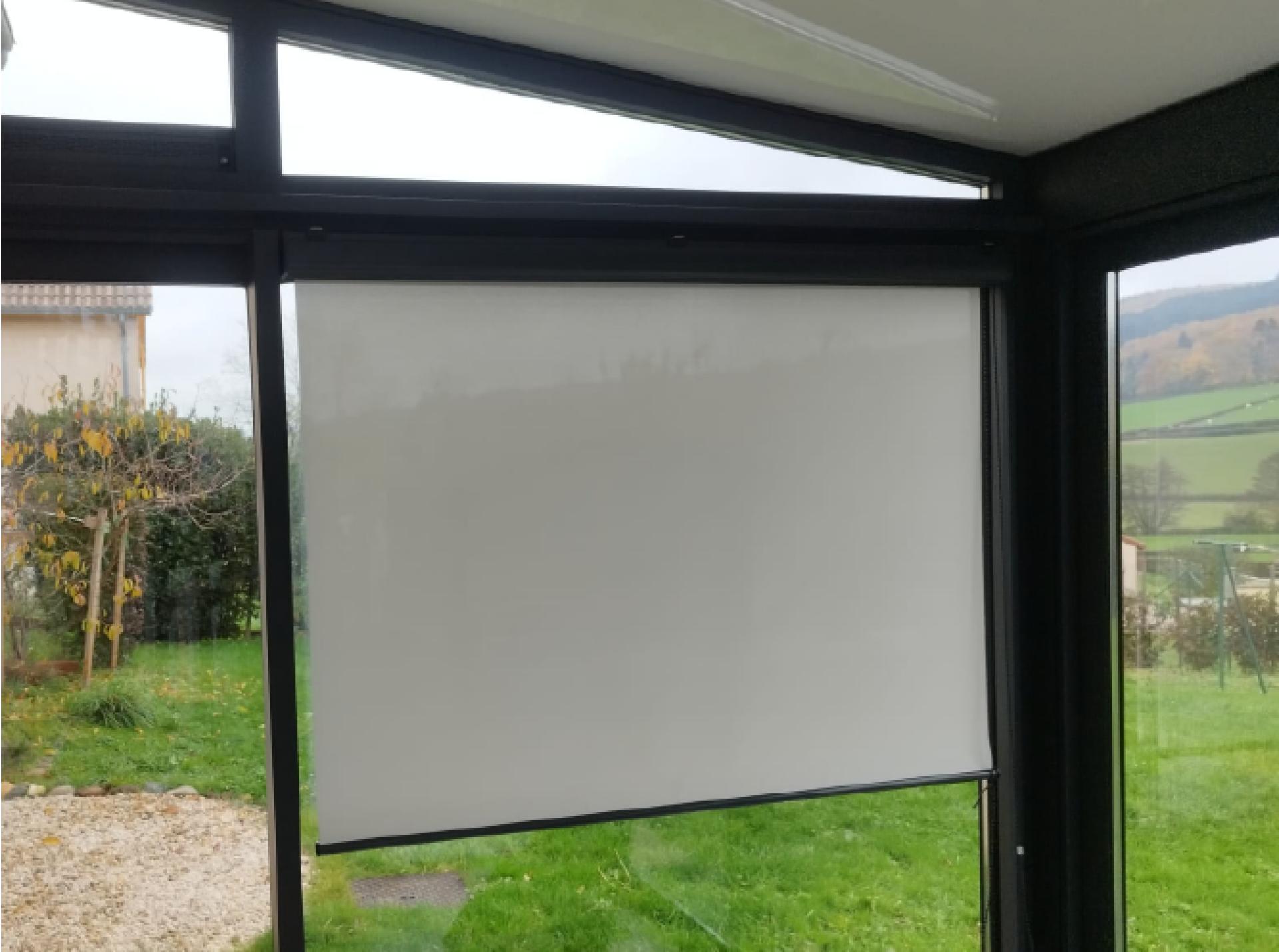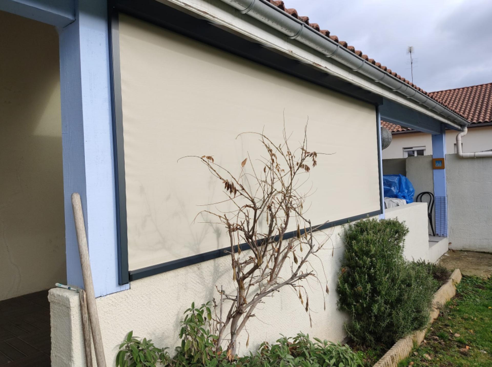 Une toile avec motorisation par alimentation filaire ou solaire, "zippée" dans les coulisses latérales pour une meilleure résistance au vent.
